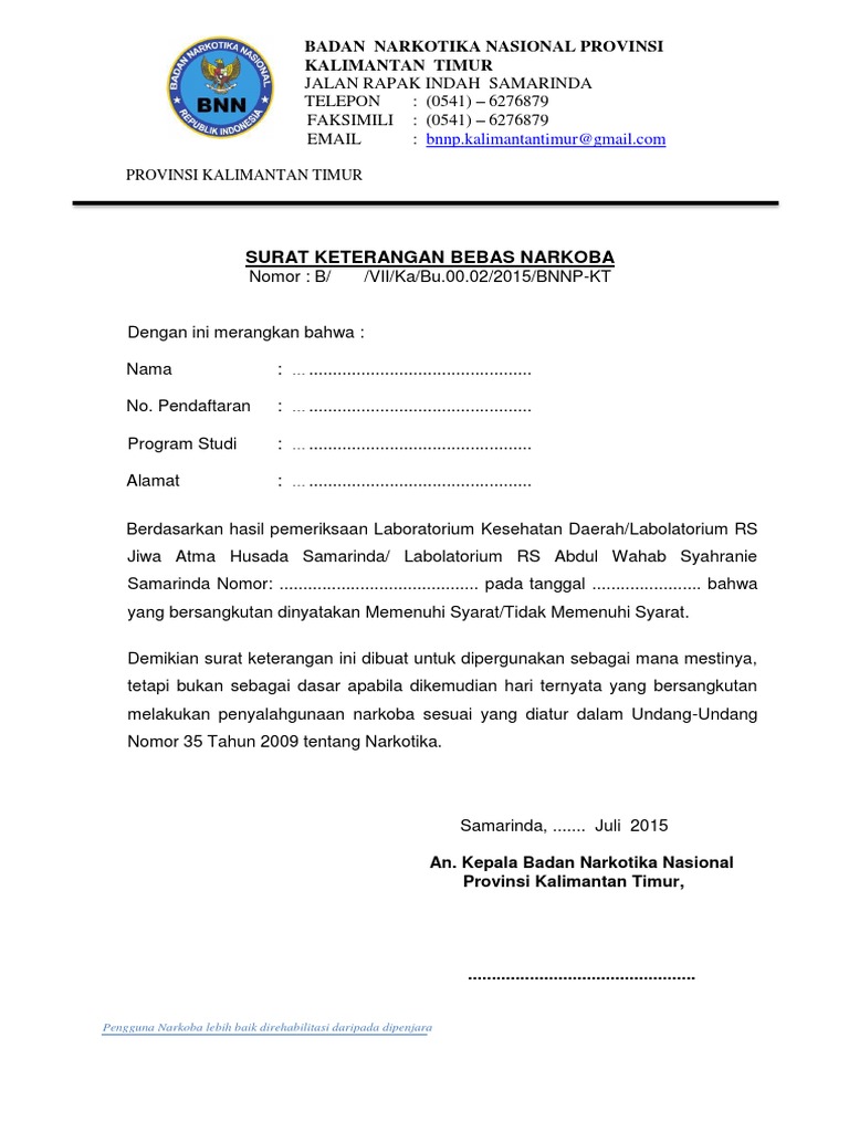 Contoh Surat Bnn - 19 Contoh Surat Pernyataan Yang Bersangkutan Bebas Dari Penyalahgunaan Narkotika - Mulai dari surat niaga hingga saat ini, mayoritas perusahaan masih banyak menggunakan surat sebagai media komunikasi.. Simak 6 contoh surat rekomendasi kerja tersebut hanya di glints. Contoh surat permohonan izin tidak masuk sekolah. Membuat skbn di bnn bisa dibilang gratis, tapi kamu harus. Harus bikin surat kuasa tetapi bingung caranya? Home dunia kerja contoh surat lamaran kerja surat kantor contoh surat pengunduran diri sekolah & organisasi dunia bisnis perjanjian surat kuasa umum contoh surat pernyataan.