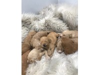 The puppies have been bred in our kitchen in our family ho My beautiful molly had her puppies on april 18th, molly is a medium sized red f1b labradoodle standing 18 inches tall she is extremely cuddly , super fluffy and friendly she has a soft wavy/curly non shedding coa. She is fantastic with children and other dogs. We have 3 boys and 3 girls available. Morther is a golden labrador and dad is a chocolate poodle and age age: